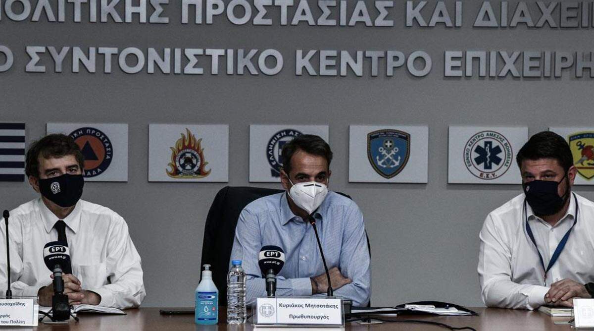 Σχεδόν ένα μήνα μετά την έναρξη της αντιπυρικής περιόδου, ο Κυριάκος Μητσοτάκης συμμετείχε σε σύσκεψη με τον υπουργό Πολιτικής Προστασίας, Μιχάλη Χρυσοχοΐδη, τον αρμόδιο υφυπουργό, Νίκο Χαρδαλιά και τον αρχηγό της πυροσβεστικής, Στέφανο Κολοκούρη στη Γενική Γραμματεία Πολιτικής Προστασίας.