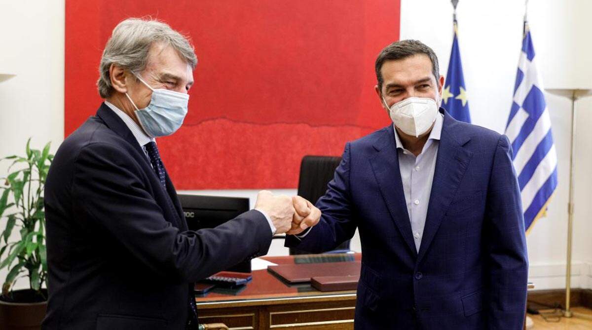 Με τον πρόεδρο του Ευρωπαϊκού Κοινοβουλίου, Νταβίντ Σασόλι συναντήθηκε ο Αλέξης Τσίπρας, συνομιλώντας για την ανάγκη να υπάρξουν γενναία βήματα από την ΕΕ την επόμενη περίοδο και να στηριχθεί ο ρόλος του Ευρωκοινοβουλίου στο πλαίσιο της Διάσκεψης για το Μέλλον της Ευρώπης.