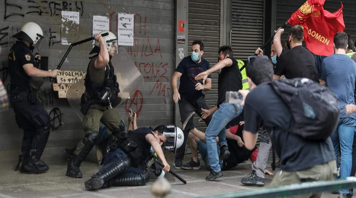 Με χρήση χημικών και γκλοπ επέλεξε αστυνομία να διαλύσει την συγκέντρωση διαμαρτυρίας του συνδικάτου οικοδόμων Αθήνας, ενάντια στο νομοσχέδιο «έκτρωμα που καταργεί το 8ωρο και φέρνει την τζάμπα εργασία για τα αφεντικά», έξω από το υπουργείο Εργασίας.