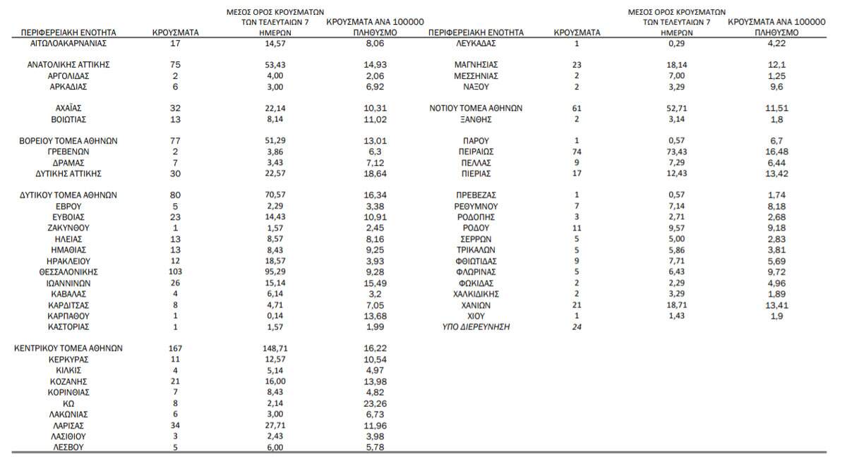 1 Με βάση τα επιβεβαιωμένα κρούσματα των τελευταίων 7 ημερών, 35