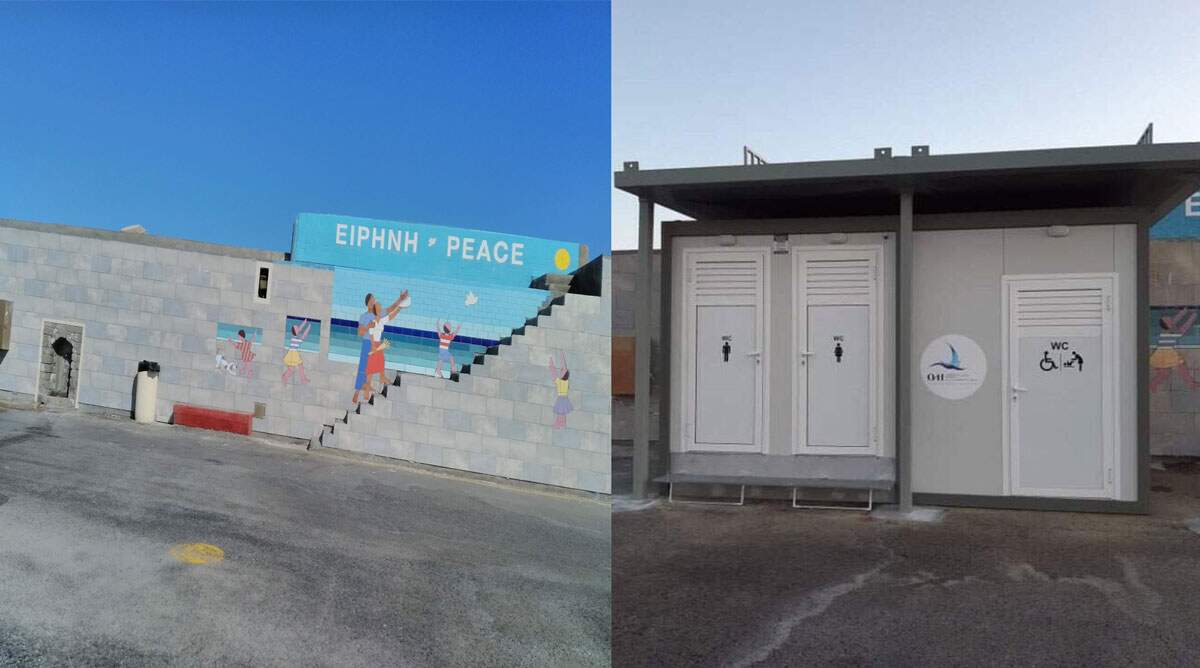 Αυτά ίσως τρόμαξαν τους άριστους της σημερινής εξουσίας του ΟΛΗ και φρόντισαν να εξαφανίσουν με τον πιο χυδαίο τρόπο ιδιαίτερα το τμήμα εκείνο που στέλνει το μήνυμα της ΕΙΡΗΝΗΣ τοποθετώντας μπροστά από το έργο δύο Τουαλέτες.