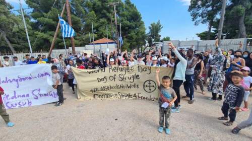 Πρόσφυγες και αλληλέγγυοι συμμετείχαν με παλμό στην κινητοποίηση που οργανώθηκε το μεσημέρι στη δομή της Ριτσώνας με αφορμή την Παγκόσμια Ημέρα Προσφύγων, με την κυβέρνηση να κλιμακώνει την αντιπροσφυγική επίθεση στη διαδικασία υποδοχής και ασύλου. Εξαιτίας των εξελίξεων, ακυρώνεται η προγραμματισμένη για την Τρίτη εκδήλωση του Green Sprout School, του σχολείου της δομής της Ριτσώνας, που ήταν αφιερωμένη στην Παγκόσμια…