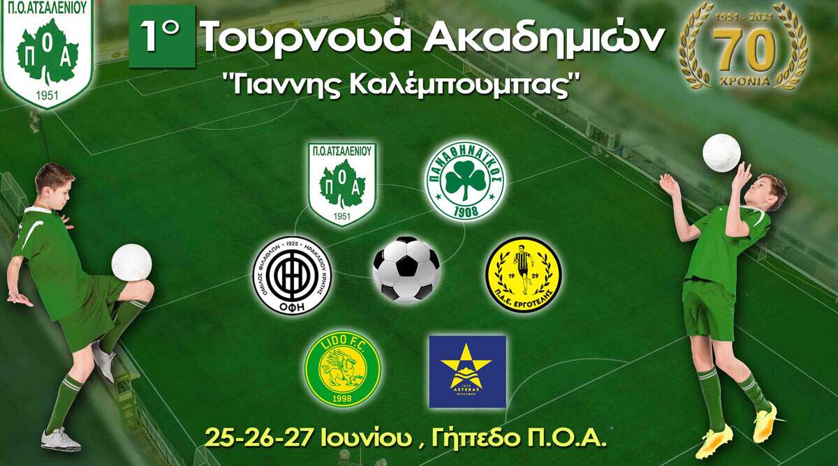 Ο Παναθλητικός Όμιλος Ατσαλένιου διοργανώνει πανελλήνιο τουρνουά ακαδημιών ποδοσφαίρου για τον εορτασμό των 70χρόνων από την ίδρυση του σωματείου και παράλληλα να τιμήσει τον επί δεκαετίες πρόεδρο της ομάδας Γιάννη Καλέμπουμπα .