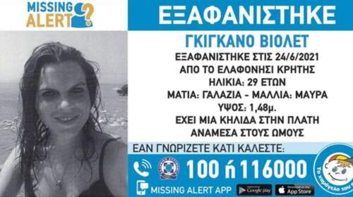 Συναγερμό σήμανε την Τετάρτη το “Χαμόγελο του Παιδιού”, κατόπιν αιτήματος της οικογένειας της 29χρονης Γαλλίδας που αγνοείται στα Χανιά. Η Βιολέτ Γκιγκανό, όπως είναι, το όνομά της, εξαφανίστηκε στις 24 Ιουνίου από το Ελαφονήσι της Κρήτης. Το “Χαμόγελο του Παιδιού” ενημερώθηκε για την εξαφάνιση της Βιολέτ Γκιγκανό σήμερα και προχώρησε στη δημοσιοποίηση των στοιχείων της ενήλικης, κατόπιν αιτήματος της οικογένειάς…
