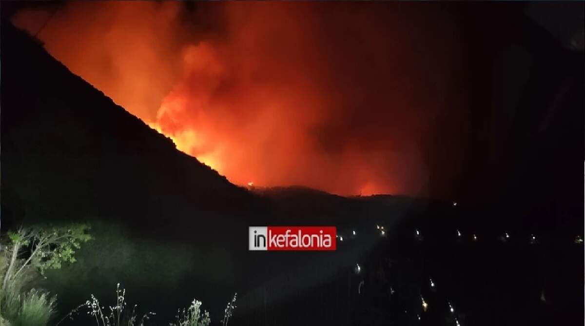 Δείτε: Μαίνεται η μεγάλη πυρκαγιά στην Κεφαλονιά – Οι φλόγες έφτασαν στις αυλές των σπιτιών