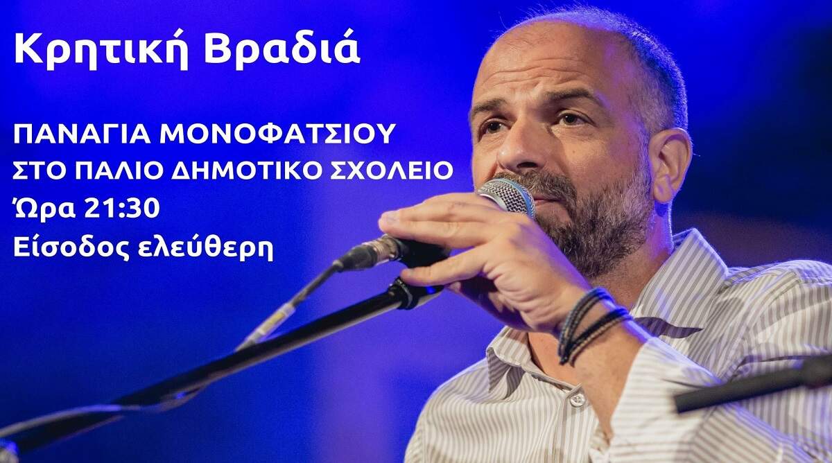 Η συναυλία θα περιλαμβάνει γνωστά, παραδοσιακά κρητικά τραγούδια, καθώς και μουσικές συνθέσεις του Κρητικού καλλιτέχνη.