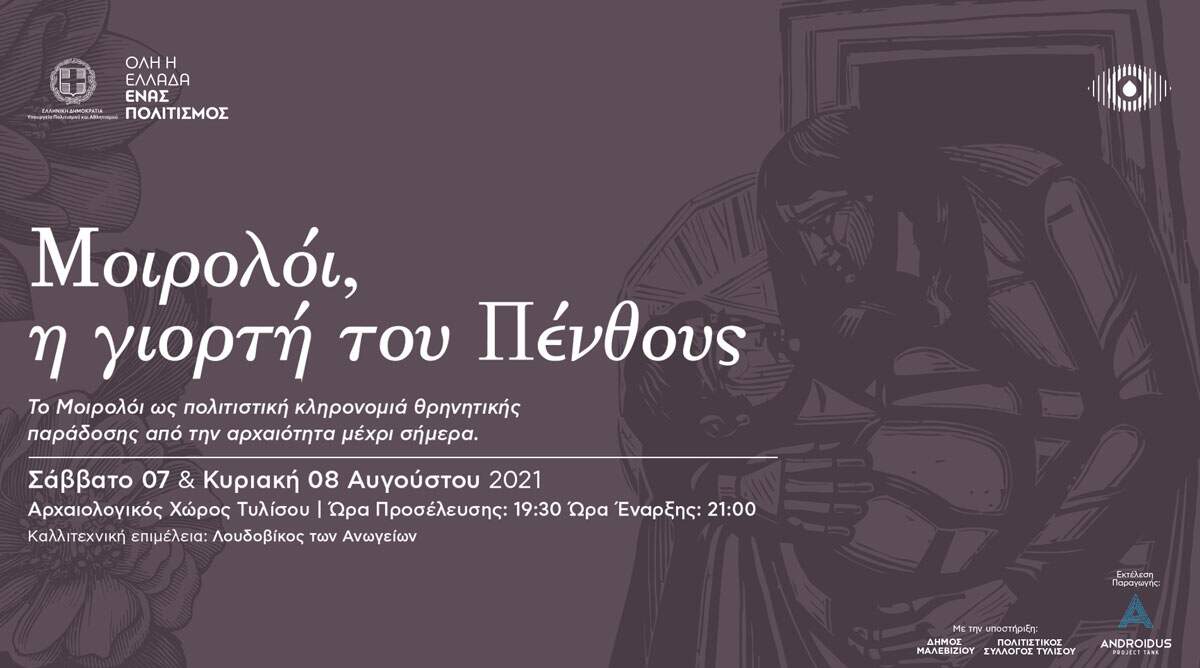 Με τη στήριξη του Δήμου Μαλεβιζίου θα πραγματοποιηθεί η εκδήλωση «Μοιρολόι, η Γιορτή του Πένθους. Το μοιρολόι ως πολιτιστική κληρονομιά θρηνητικής παράδοσης από την αρχαιότητα μέχρι σήμερα».