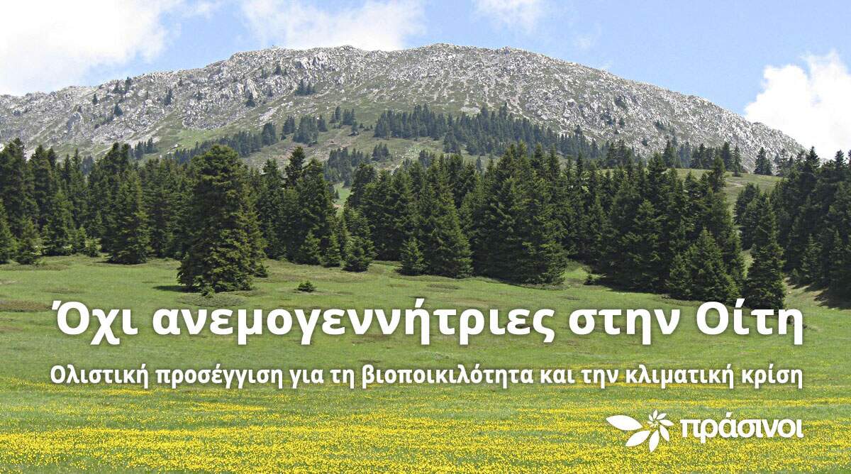 Στήριξη στον αγώνα για την προστασία της Οίτης και τη ματαίωση των 5 μεγάλων αιολικών σταθμών που σχεδιάζονται στις κορυφογραμμές της, εκφράζει το νέο κόμμα των Πράσινων. Σε μήνυμά τους προς την Κίνηση Πολιτών για την Προστασία της Οίτης, ενόψει της δεύτερης Πορείας Αλληλεγγύης στην Οίτη το Σάββατο 7 Αυγούστου, οι Πράσινοι τονίζουν ότι είναι ζωτικό να υπερασπίσουμε ΚΑΙ τη Φύση ΚΑΙ το κλίμα.