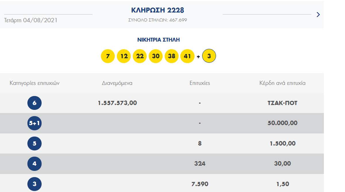 Οι τυχεροί αριθμοί στο ΛΟΤΤΟ 4 Αυγούστου 20214 Αυγούστου 2021 Δείτε τους αριθμούς που αναδείχτηκαν στη σημερινή κλήρωση (4/8/2021) του Λόττο