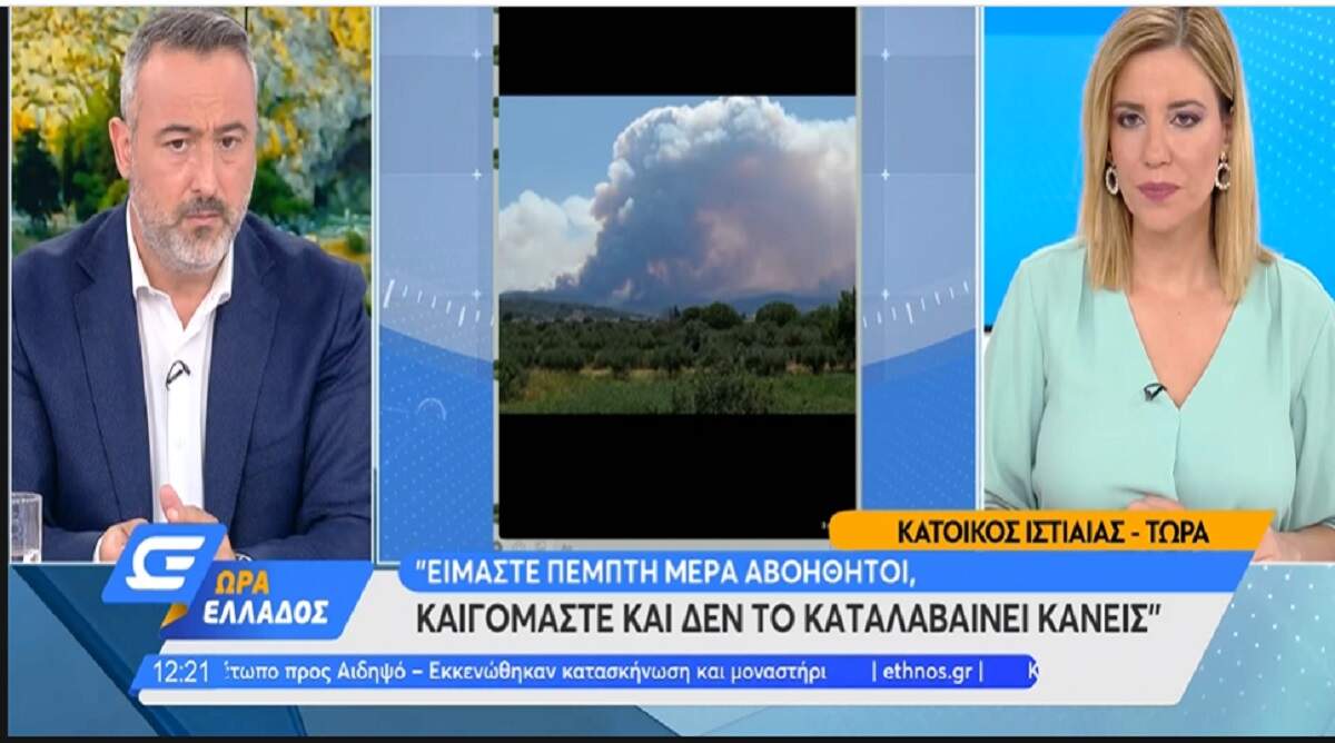 Τη δραματική κατάσταση στην Ιστιαία, περιγράφει κι άλλη κάτοικος που ζητά βοήθεια για την κατάσβεση της φωτιάς, λέγοντας “είμαστε 5η μέρα αβοήθητοι, καιγόμαστε και δεν το καταλαβαίνει κανείς”.