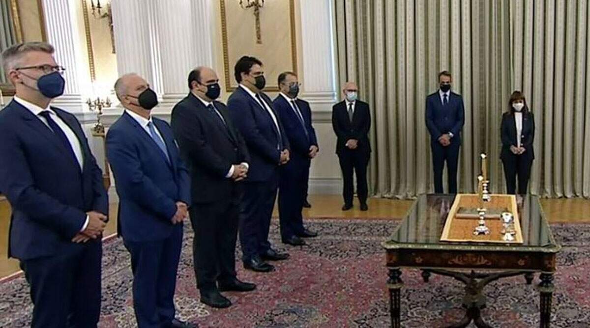 Ορκίστηκαν στις 13:00 την Παρασκευή οι νέοι υπουργοί της της κυβέρνησης, σε μια τελετή που πραγματοποιήθηκε στο Προεδρικό Μέγαρο, παρουσία της Προέδρου της Δημοκρατίας, Κατερίνας Σακελλαροπούλου και του πρωθυπουργού Κυριάκου Μητσοτάκη. Η ορκωμοσία πραγματοποιήθηκε χοροστατούντος του Αρχιγραμματέως της Ιεράς Συνόδου, Επισκόπου Ωρέων, κ. Φιλοθέου.
