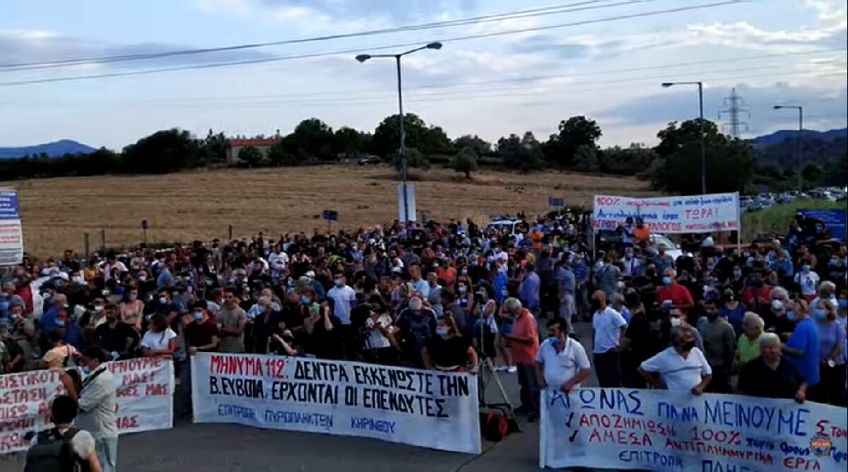 Βροντερό μήνυμα κόντρα στα κυβερνητικά σχέδια για “ανάπτυξη” και “επενδύσεις” πάνω στα αποκαΐδια της Βόρειας Εύβοιας έστειλαν χιλιάδες κάτοικοι από πυρόπληκτες περιοχές του νησιού που συμμετείχαν στο συλλαλητήριο που έγινε το Σάββατο στη Στροφυλιά διεκδικώντας ουσιαστική στήριξη των πυροπλήκτων αλλά και αποκατάσταση των καταστροφών στο νησί.