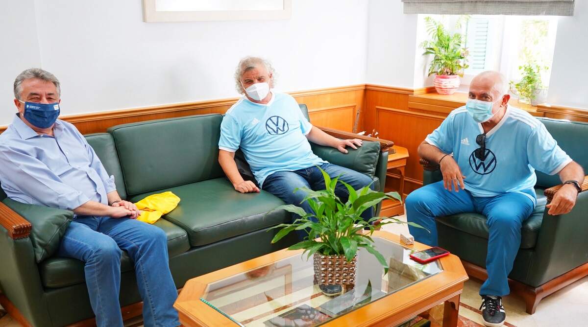 Ο Περιφερειάρχης Σταύρος Αρναουτάκης ευχαρίστησε για την επίσκεψη τον σπουδαίο Έλληνα ποδοσφαιριστή που το 2003 ψηφίστηκε ως ο καλύτερος Έλληνας ποδοσφαιριστής από την ΕΠΟ για τον εορτασμό των 50 χρόνων της ΟΥΕΦΑ.