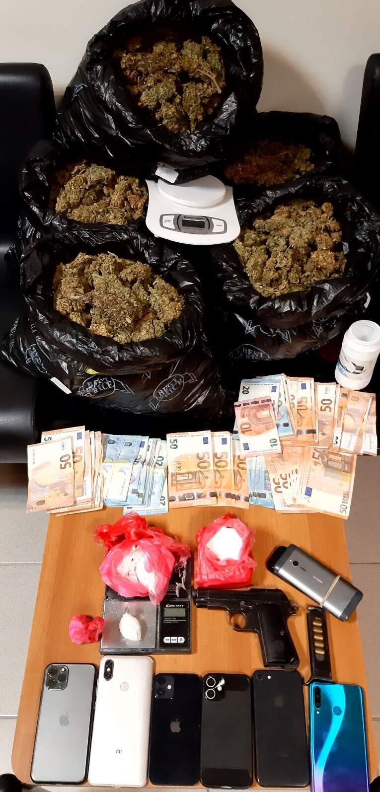 Κατασχέθηκαν μεταξύ άλλων περισσότερα από 5 κιλά κάνναβης, 300 γραμμάρια κοκαΐνης και πιστόλι
