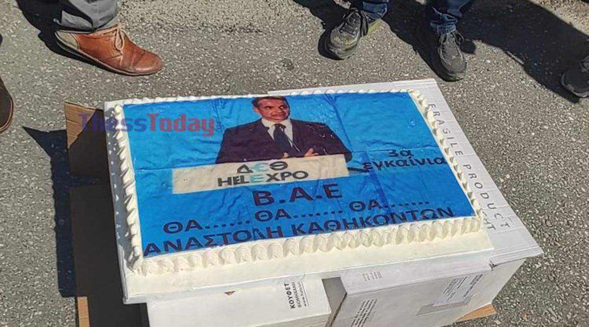 Τούρτα με τα «θα…» που κατά καιρός έχουν ακούσει από τον Κυριάκο Μητσοτάκη έκοψαν οι υγειονομικοί στη Θεσσαλονίκη, έξω από την 3η και 4η ΥΠΕ, στην Αριστοτέλους.