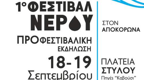 Το πρόγραμμα και η αφίσα σχετικά με τις προφεστιβαλικές εκδηλώσεις, για το 1ο Φεστιβάλ για το Νερό στον Αποκόρωνα, που θα γίνουν στις 18 και 19 Σεπτεμβρίου.