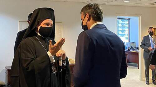 Ολοκληρώθηκε η συνάντηση του πρωθυπουργού Κυριάκου Μητσοτάκη με τον Αρχιεπίσκοπο Αμερικής, Ελπιδοφόρο, η οποία πραγματοποιήθηκε στα γραφεία της Μόνιμης Αντιπροσωπείας της Ελλάδος στα Ηνωμένα Έθνη. «Λήξαν» χαρακτήρισε το επεισόδιο ο Αρχιεπίσκοπος Αμερικής κατά την είσοδό του στα γραφεία του ΟΗΕ, βάζοντας έτσι τέλος στο «θρίλερ» που προηγήθηκε. Ανώτατη κυβερνητική πηγή ανέφερε προς τους παριστάμενους δημοσιογράφους μετά το πέρας της συνάντησης…
