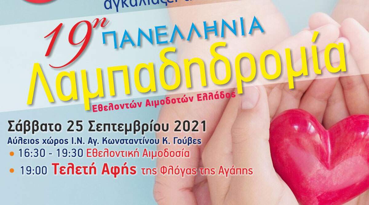 Υπό την αιγίδα της Περιφέρειας Κρήτης πραγματοποιείται η 19η Πανελλήνια Λαμπαδηδρομία Εθελοντών Αιμοδοτών στο Δήμο Χερσονήσου, ο οποίος αγκαλιάζει τη «Φλόγα της Αγάπης» τη Λαμπαδηδρομία που θα πραγματοποιηθεί το Σάββατο 25 και την Κυριακή 26 Σεπτεμβρίου 2021, με τους εθελοντές αιμοδότες να τη μεταφέρουν μέσα σε κλίμα γιορτής ενώνοντας το Δήμο από άκρη σε άκρη.