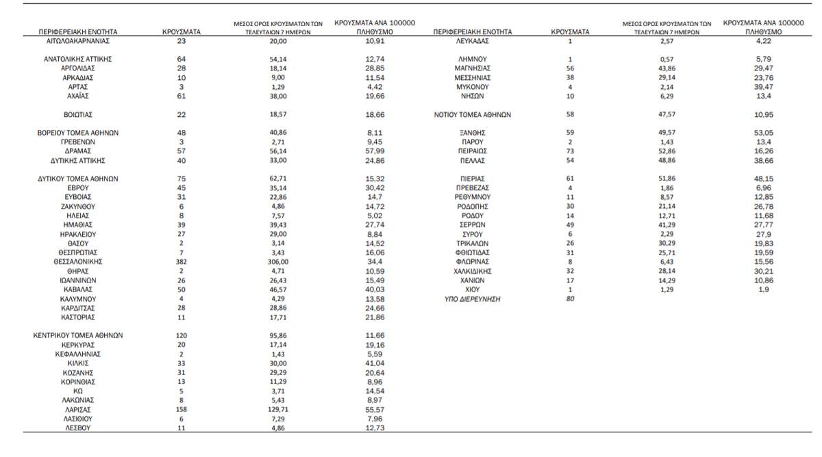 Η σημερινή ανακοίνωση (7/10/2021) του ΕΟΔΥ για την πορεία της πανδημίας στη χώρα μας