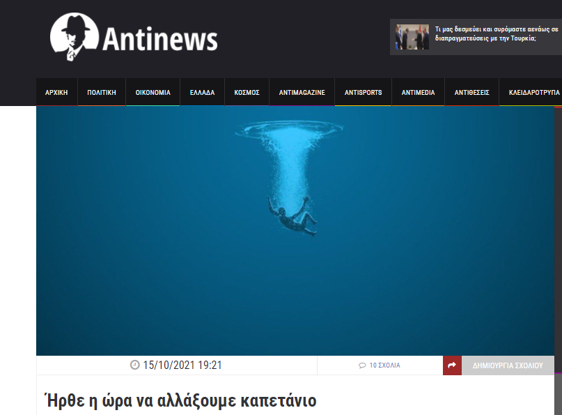 Διαβάστε ολόκληρο το κείμενο του antinews με τον τίτλο “Ήρθε η ώρα να αλλάξουμε καπετάνιο”:
