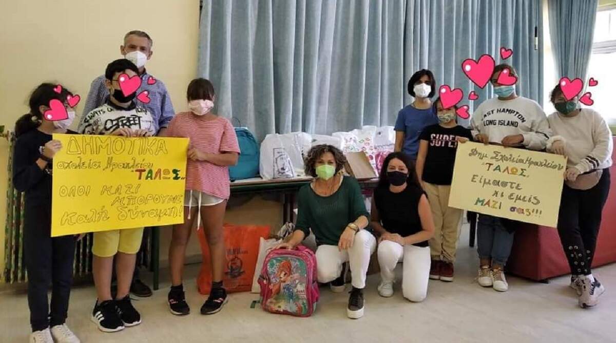 Μαθητές και εκπαιδευτικοί των 4ου και 50ου Δημοτικών Σχολείων Τάλως, στο Ηράκλειο, συγκέντρωσαν χρήματα αλλά και σχολικά είδη και με τις δικές τους εικαστικές δημιουργίες τα στέλνουν στους σεισμόπληκτους συμμαθητές τους.