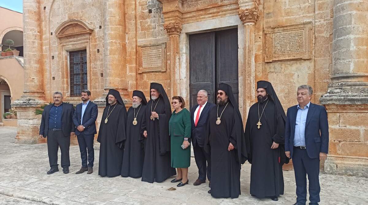 Διαδοχικές συναντήσεις με τον εκπρόσωπο του οικουμενικού Πατριάρχη Γέροντα Χαλκηδόνος Σεβασμιότατο Εμμανουήλ και την Υπουργό Πολιτισμού Λίνα Μενδώνη είχε σήμερα στην Ιστορική Μόνη Αγίας Τριάδας Τζαγκαρόλων στο Ακρωτήρι Χανίων ο Περιφερειάρχης Κρήτης Σταύρος Αρναουτάκης.