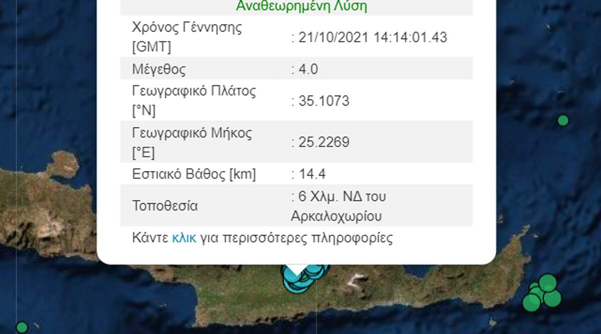 Νέα σεισμική δόνηση έγινε αισθητή πριν από λίγα λεπτά στο Ηράκλειο.