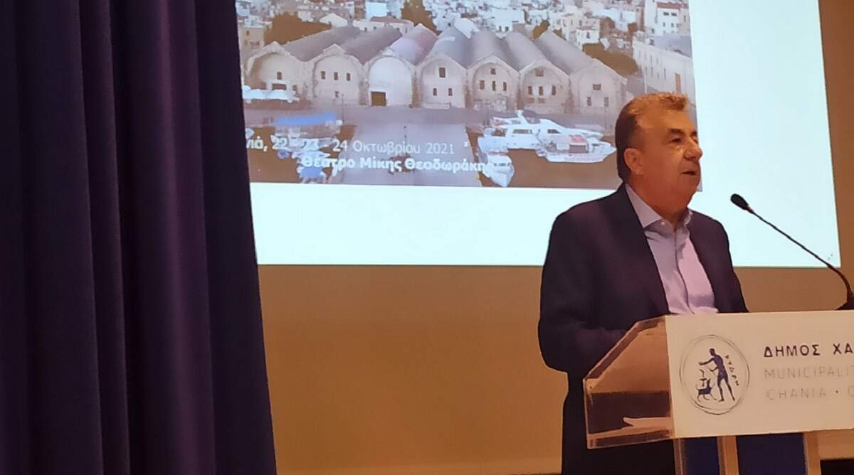 Στη σημαντικότητα του τριημέρου συνεδρίου με θέμα«Ενετικά Νεώρια Χανίων -Έρευνα και Τεκμηρίωση» αναφέρθηκε στον χαιρετισμό του ο Περιφερειάρχης Κρήτης Σταύρος Αρναουτάκης, συγχαίροντας τους συνδιοργανωτές και όλους τους συμμετέχοντες, ομιλητές, φορείς, επιστήμονες.