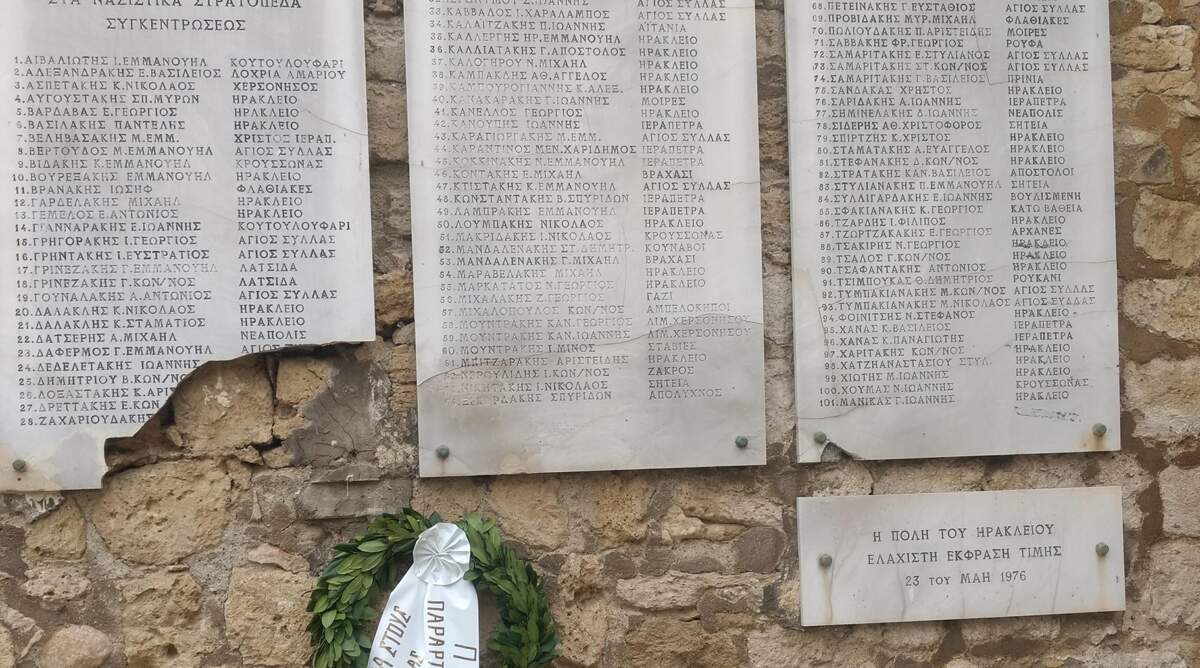 Με αφορμή την 28η Οκτωβρίου κατάθεση στεφάνου πραγματοποίησε το τοπικό παράρτημα της ΠΕΑΕΑ-ΔΣΕ στο Ηράκλειο Κρήτης, στο σημείο που είναι αναρτημένη επιτύμβια στήλη για τους 101 θανόντες Ηρακλειώτες τους οποίους στην διάρκεια της φασιστικής κατοχής οι Γερμανοί απήγαγαν από το Ηράκλειο και μετέφεραν στα κάτεργα των Ναζί στην Γερμανία όπου βρήκαν φριχτό θάνατο.