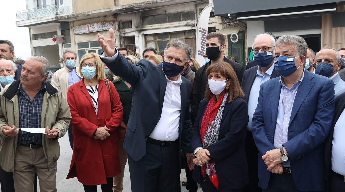 Η Πρόεδρος ξεναγήθηκε στο κέντρο του Αρκαλοχωρίου και διαπίστωσε ιδίοις όμμασι τις εκτεταμένες ζημιές που υπάρχουν σε σπίτια, καταστήματα αλλά και υποδομές.