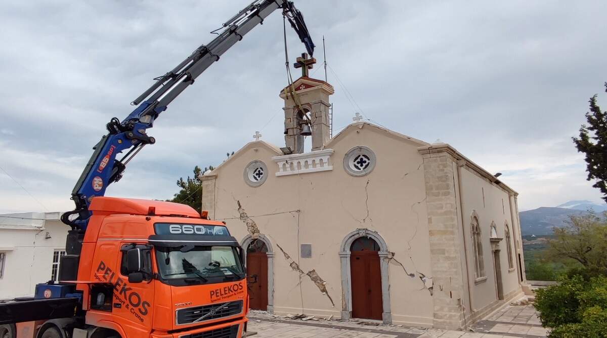 Ίνι: Αποκαθηλώθηκε το καμπαναριό του σεισμόπληκτου Άη Γιώργη- Ήταν 110 χρόνων και ζύγιζε πάνω από 7 τόνους! (φωτο)