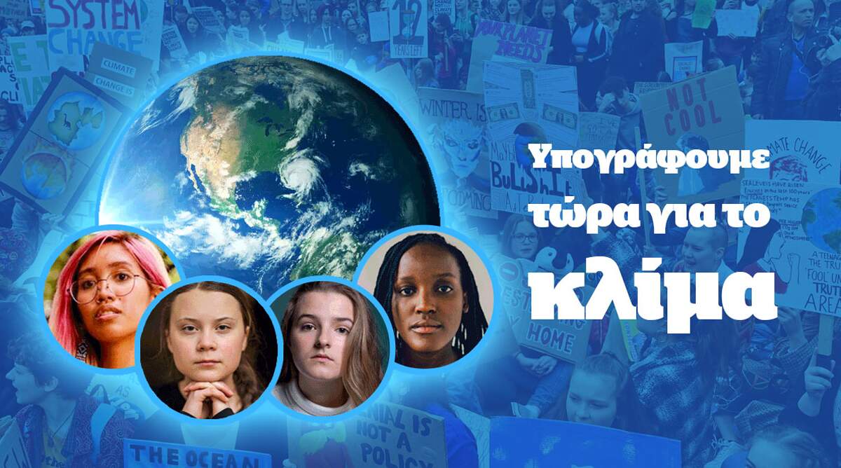 Έκκληση να στηριχθεί η εκστρατεία υπογραφών για το κλίμα, που έχουν ξεκινήσει η Γκρέτα Τούνμπεργκ και 3 ακόμη γνωστές νέες ακτιβίστριες από διαφορετικά μέρη του πλανήτη, απευθύνει το νέο κόμμα των Πράσινων.