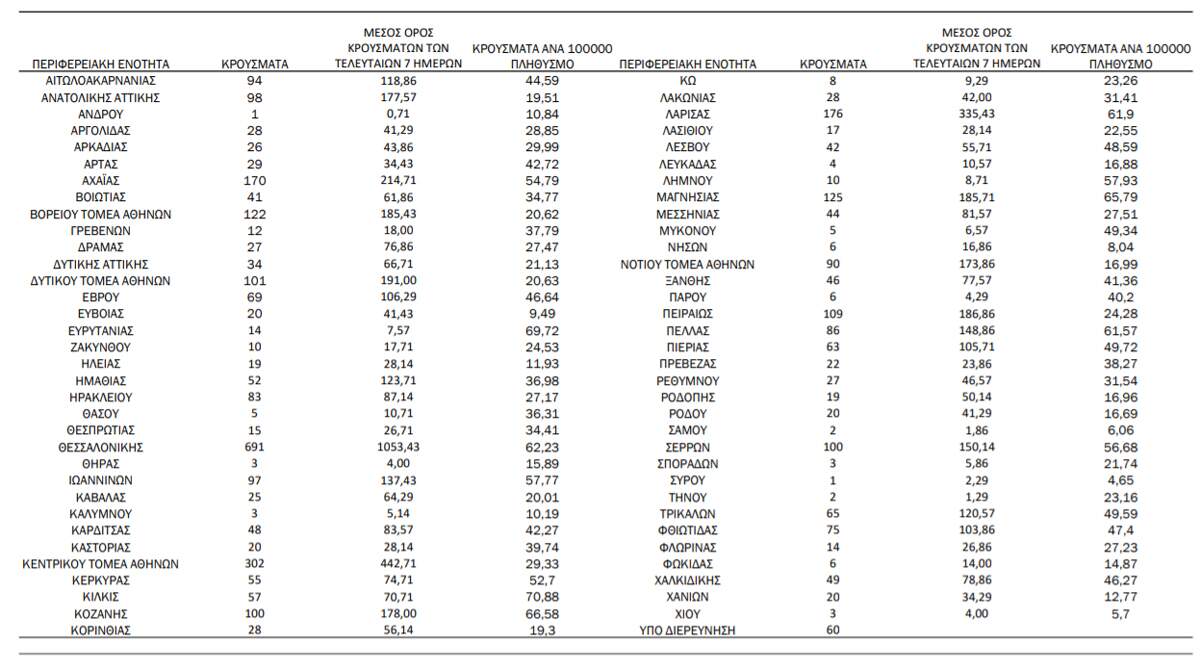 Η σημερινή ανακοίνωση (14/11/2021) του ΕΟΔΥ για την πορεία της πανδημίας στη χώρα μας