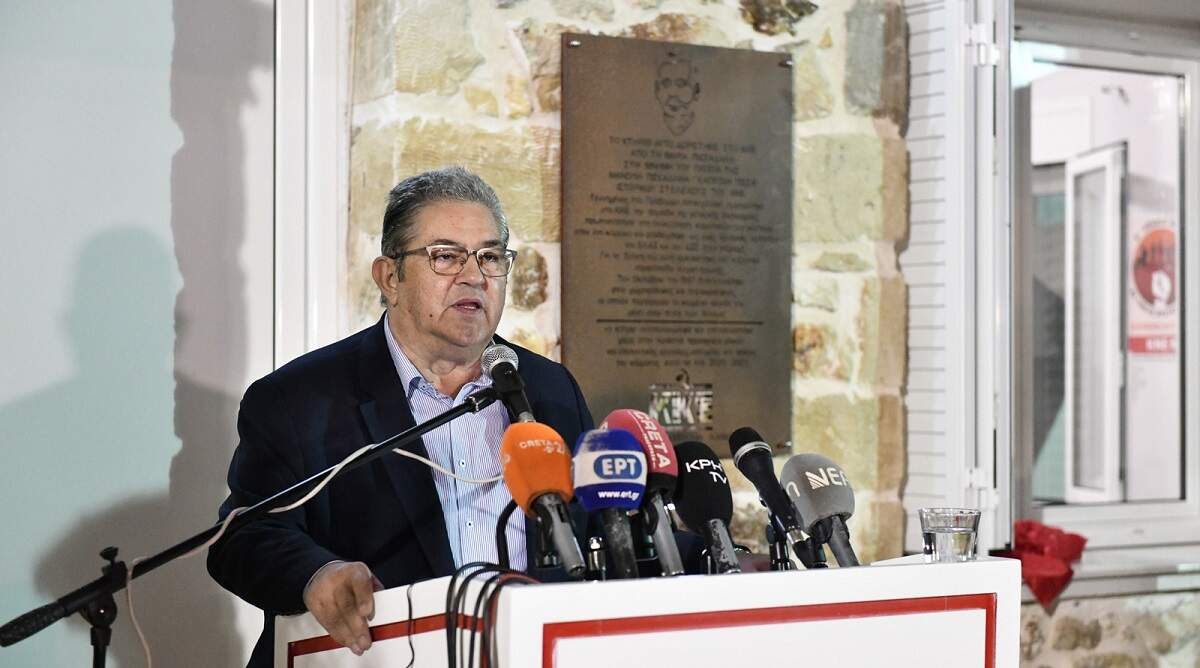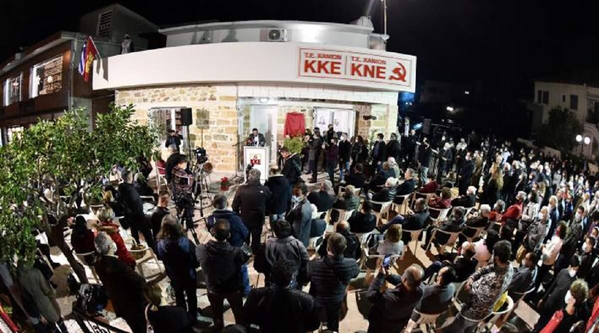 Ευθείες βολές κατά της κυβέρνησης και της αξιωματικής αντιπολίτευσης εξαπέλυσε το βράδυ του Σαββάτου από τα Χανιά ο γενικός γραμματέας του Κομμουνιστικού Κόμματος, Δημήτρης Κουτσούμπας, ο οποίος κάλεσε τους πολίτες να συμπορευθούν με το κόμμα του και να ακολουθήσουν την πολιτική του πρόταση σε ένα σχέδιο για την ανατροπή, τη νέα κοινωνία και το σοσιαλισμό.