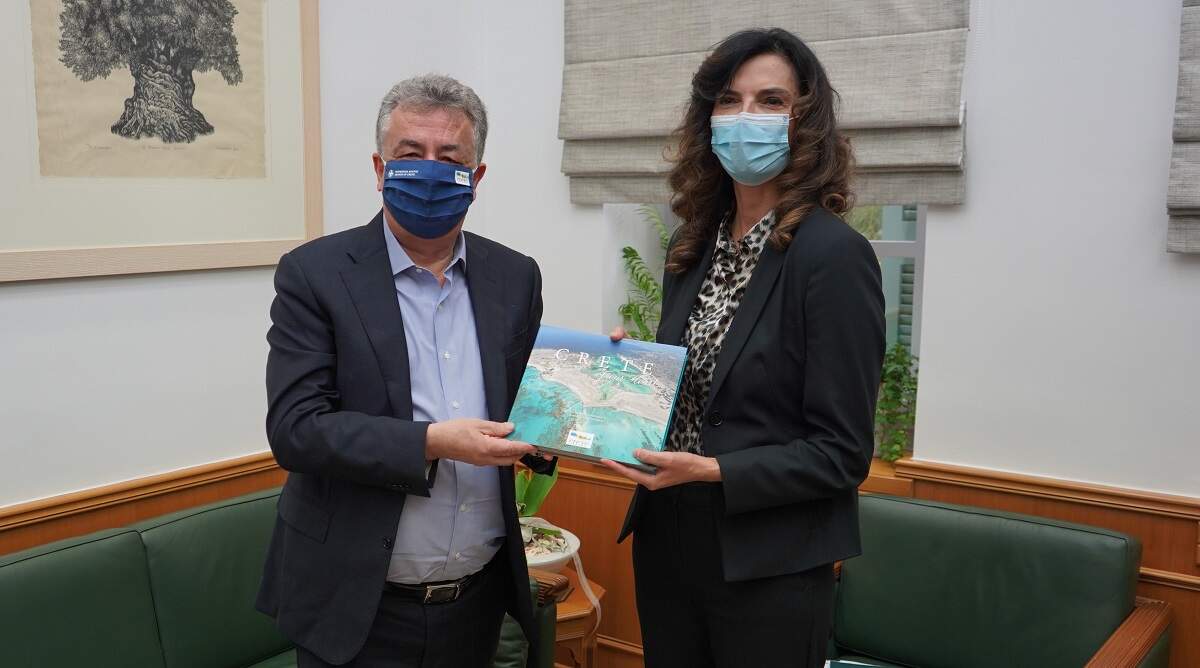 Ο Περιφερειάρχης Κρήτης και η Ιταλίδα Πρέσβης συζήτησαν επίσης την ενίσχυση των εξαγωγών τυποποιημένων Κρητικών προϊόντων στην Ιταλία, του τουρισμού αλλά και θέματα επιχειρηματικότητας καθώς υπάρχει ενδιαφέρον για ιταλικές επενδύσεις στο νησί μας.