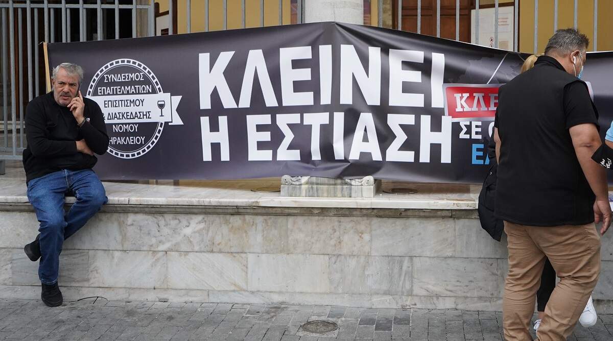 Η εστίαση απεργεί σήμερα και τα περισσότερα καταστήματα στο Ηράκλειο συμμετέχουν στη διαμαρτυρία. Ο φωτογραφικός φακός κατέγραψε την εικόνα που επικρατεί στο κέντρο του Ηρακλείου με τις ασυνήθιστες εικόνες των κλειστών μαγαζιών, αλλά και τη συγκέντρωση των ιδιοκτητών και εργαζομένων στα ΛΙοντάαρια.