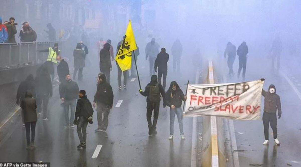 Επεισόδια ξέσπασαν στις Βρυξέλλες το μεσημέρι της Κυριακής κατά τη διάρκεια διαδήλωσης κατά των μέτρων για την προστασία από τον κορονοϊό.