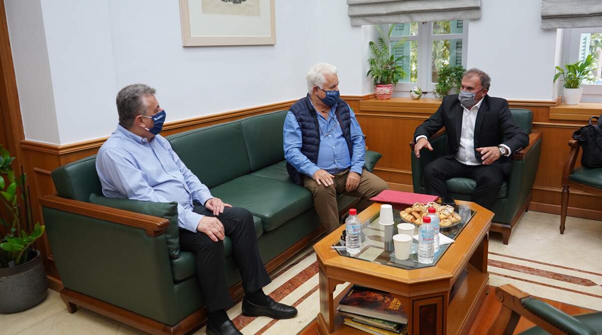 Κατά τη διάρκεια συνάντησης που έγινε στο γραφείο του Περιφερειάρχη οι Δήμαρχοι Ιεράπετρας Θεοδόσης Καλαντζάκης και Βιάννου Μηνάς Σταυρακάκης, ενημέρωσαν τον Περιφερειάρχη Κρήτης για την κοινή βούληση να συνεργαστούν και να διεκδικήσουν συγκεκριμένα έργα. Οι Δύο Δήμαρχοι ζήτησαν τη στήριξη του Σταύρου Αρναουτάκη, για την εκπόνηση των μελετών και την προώθηση των έργων.