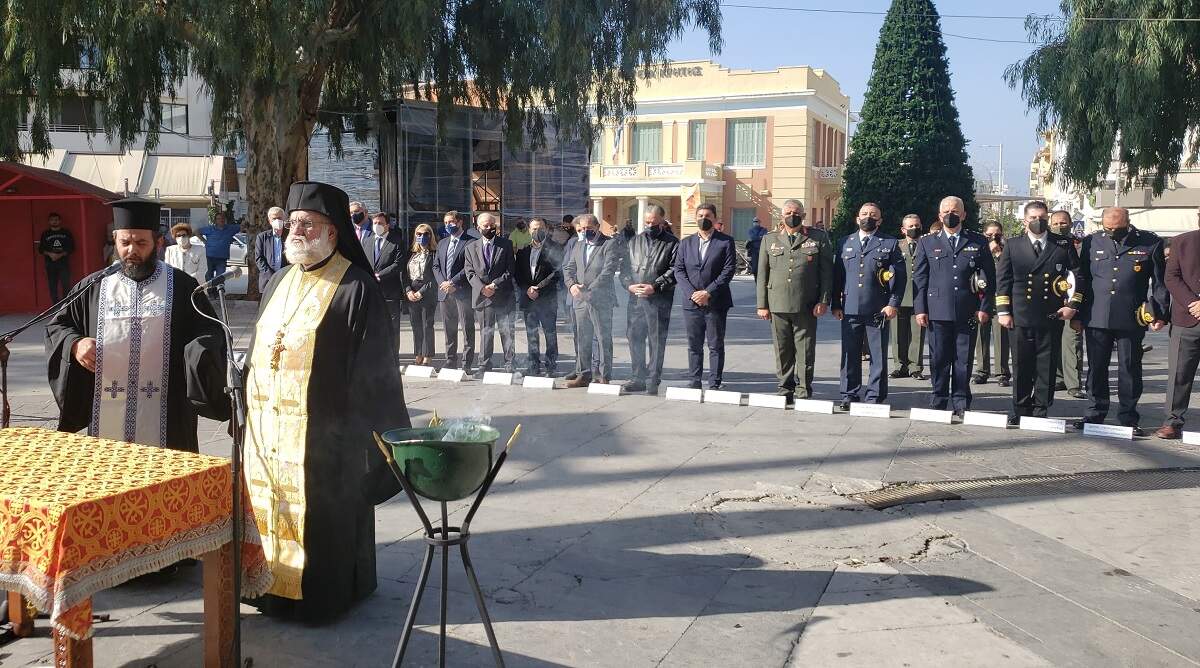 Την επιμνημόσυνη δέηση τέλεσε ο Πρωτοσύγκελος της Ιεράς Αρχιεπισκοπής Κρήτης Μεθόδιος Βερνιδάκης ενώ στεφάνια κατέθεσαν στο άγαλμα του Άγνωστου Στρατιώτη: ο εκπρόσωπος της Κυβέρνησης Υφυπουργός Πολιτισμού και Αθλητισμού Λευτέρης Αυγενάκης, οι βουλευτές Ηρακλείου, ο Αντιπεριφερειάρχης Ηρακλείου, ο Δήμαρχος Ηρακλείου, οι εκπρόσωποι στρατιωτικών αρχών, σωμάτων ασφαλείας, κομμάτων, οργανώσεων αποστράτων.