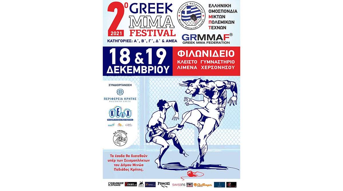 Με τη συνδιοργάνωση της Περιφέρειας Κρήτης, της Κοινωφελούς Επιχείρησης Δήμου Χερσονήσου και του Αθλητικού Συλλόγου Τρισκελής, διεξάγεται το 2ο κατά σειρά Φεστιβάλ Μεικτών Πολεμικών Τεχνών. Η Ελληνική Ομοσπονδία Μικτών Πολεμικών Τεχνών υποδέχεται το 2ο Greek MMA Festival 2021, το Σάββατο 18 και την Κυριακή 19 Δεκεμβρίου 2021 στο Φιλωνίδειο Κλειστό Γυμναστήριο Λιμένα Χερσονήσου.
