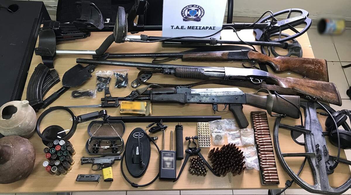 Συνελήφθη στο Ηράκλειο ένα άτομο για παραβάσεις της Νομοθεσίας περί προστασίας αρχαιοτήτων και εν γένει της πολιτιστικής κληρονομιάς και παραβάσεις της Νομοθεσίας περί όπλων. Κατασχέθηκαν πολεμικό τυφέκιο τύπου kalashnikov, γεμιστήρες πολεμικού τυφεκίου, πιστόλι με τον γεμιστήρα του, κυνηγετικά όπλα και φυσίγγια . Επιπλέον κατασχέθηκαν αντικείμενα τα οποία εμπίπτουν στη συγκεκριμένη Νομοθεσία .