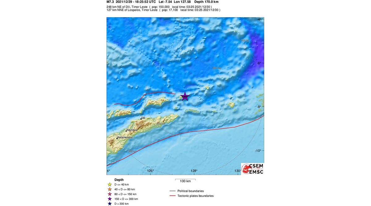 Ο σεισμός προερχόταν από εστιακό βάθος 170 χιλιομέτρων και έγινε αισθητός μέχρι την Ντίλι, την πρωτεύουσα του Ανατολικού Τιμόρ, που απέχει 250 χιλιόμετρα.