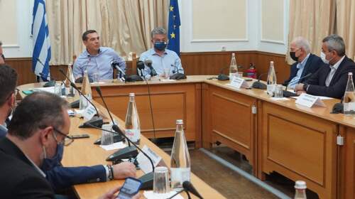 Ο Αλ. Τσίπρας στην Περιφέρεια Κρήτης – Σύσκεψη με Αρναουτάκη και Λαμπρινό