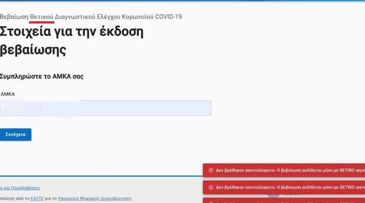 Όπως επισημαίνει ο Μάριος Κάτσης Τομεάρχης Ψηφιακής Διακυβέρνησης του ΣΥΡΙΖΑ, οι εργοδότες τους ζητούν βεβαίωση θετικού τεστ και στις πλατφόρμες δεν μπορεί να εκτυπωθεί αν δεν είναι pcr test.