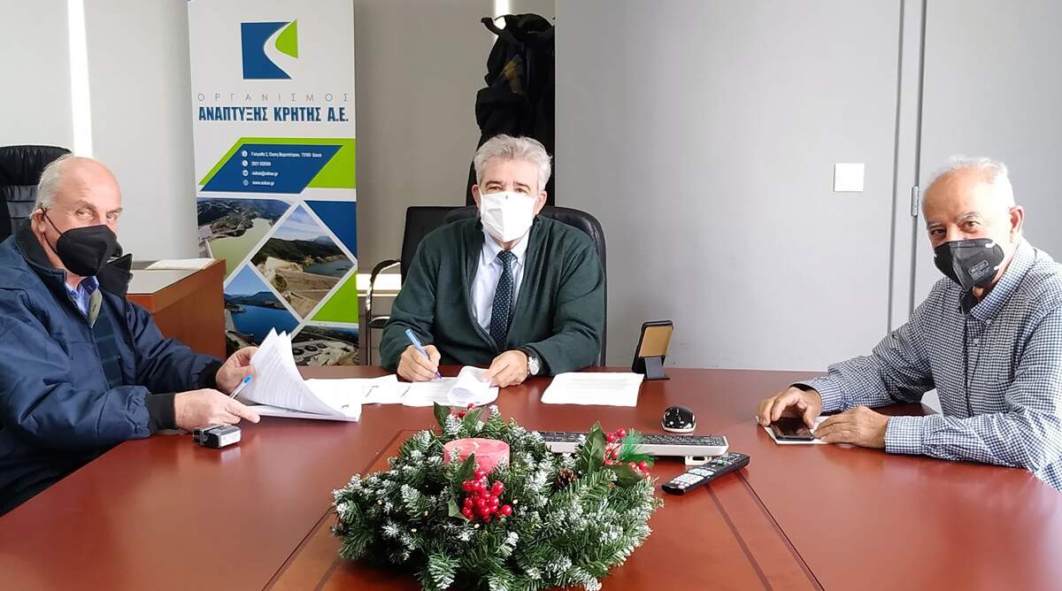 Η σύμβαση που αφορά το έργο «Γεωτρήσεις και Δοκιμές Εισπίεσης για τον καθορισμό των εργασιών στεγάνωσης του Φράγματος Βαλσαμιώτη» υπογράφηκε την Παρασκευή 07/01/2022 στις εγκαταστάσεις του Οργανισμού Ανάπτυξης Κρήτης, στην Αγυιά Χανίων.