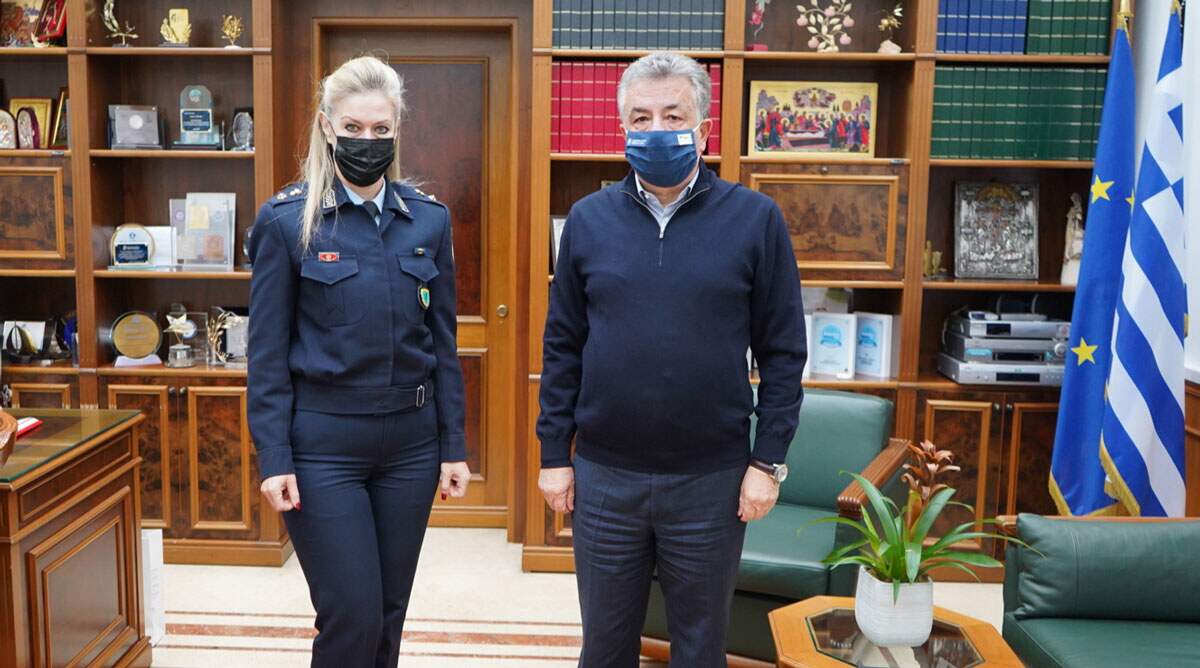 Με τη νέα διοικήτρια του τμήματος τροχαίας ΒΟΑΚ Αστυνόμο Α΄ Ελένη Παπαθανασίου συναντήθηκε σήμερα ο Περιφερειάρχης Κρήτης Σταύρος Αρναουτάκης.