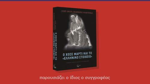 Η Πρεσβεία της Δημοκρατίας της Κούβας στην Ελλάδα, το Ελληνικό Μεσογειακό Πανεπιστήμιο (ΕΛΜΕΠΑ) και οι εκδόσεις ΤΟΠΟΣ διοργανώνουν παρουσίαση του βιβλίου του συμβούλου και Προξένου της Πρεσβείας, κ. José Oriol Marrero Martίnez, «Ο ΧΟΣΕ ΜΑΡΤΙ ΚΑΙ ΤΟ “ΕΛΛΗΝΙΚΟ ΣΤΟΙΧΕΙΟ”». Μια μελέτη των αναφορών του εθνικού ήρωα της Κούβας για το Ελληνικό στοιχείο. Η παρουσίαση του βιβλίου θα πραγματοποιηθεί τη Δευτέρα…