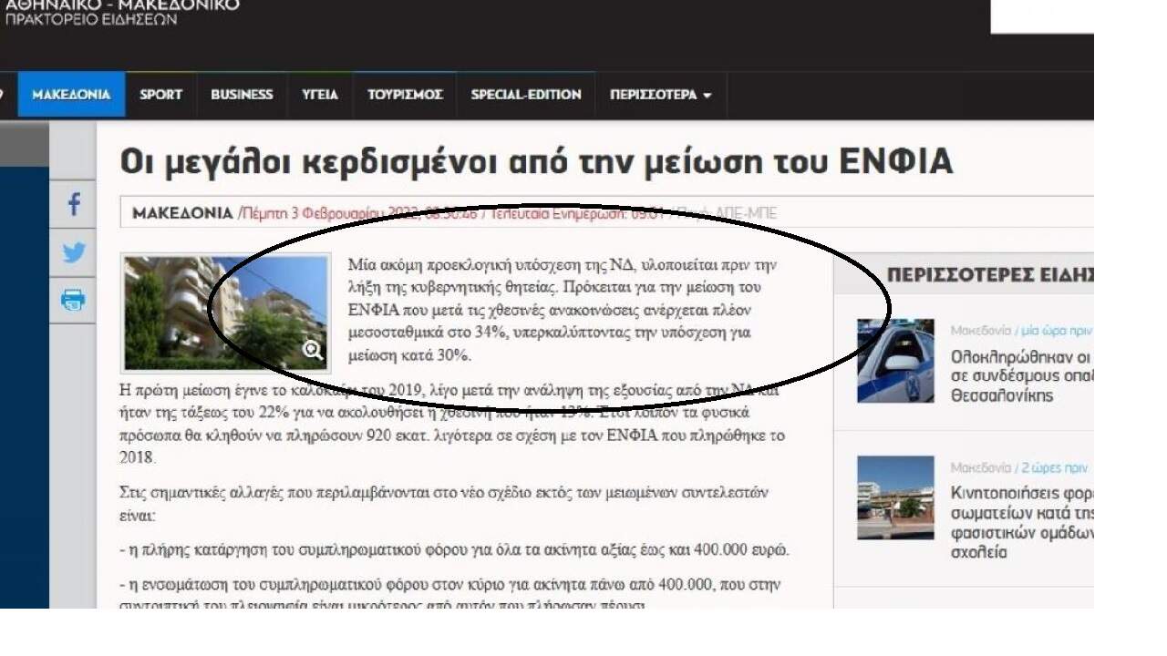 «Σε δημοσίευμα του για την μείωση του ΕΝΦΙΑ το Αθηναϊκό Πρακτορείο Ειδήσεων αναπαράγει αυτούσιο το κυβερνητικό non paper σε μια παρουσίαση που θα την ζήλευε ακόμη και το γραφείο τύπου της Ν.Δ.