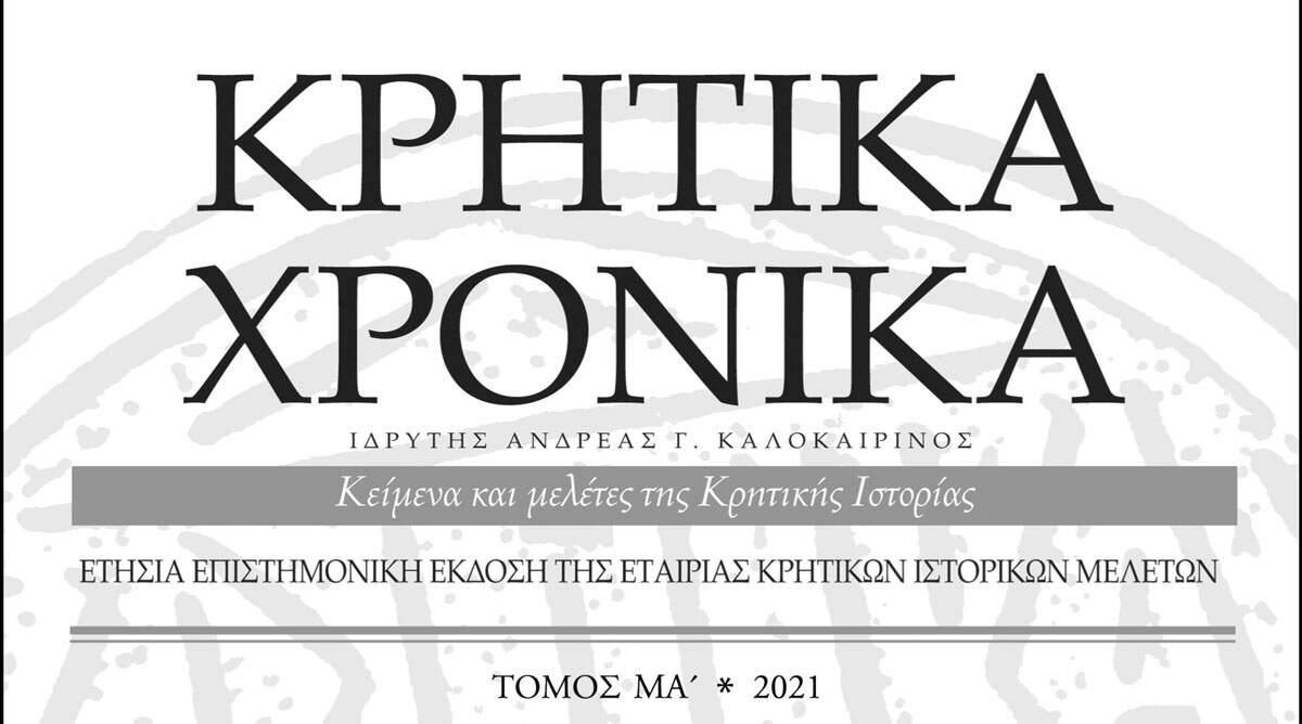 Ο τόμος ΜΑ΄ (2021) των Κρητικών Χρονικών αποτελεί τον ενδέκατο τόμο της νεότερης εκδοτικής περιόδου των Κρητικών Χρονικών -η οποία ξεκίνησε το 2011- και τον τεσσαρακοστό πρώτο τόμο του περιοδικού από την αρχή της έκδοσής του το 1947. Οι τόμοι του περιοδικού είναι διαθέσιμοι στο Πωλητήριο και το e-shop του Ιστορικού Μουσείου Κρήτης (www.historical-museum.gr) μαζί με όλες τις εκδόσεις της Εταιρίας Κρητικών Ιστορικών Μελετών και επιλεγμένα αντικείμενα ντόπιων καλλιτεχνών βασισμένα στις συλλογές των Μουσείων της. Τα έσοδα από τις πωλήσεις ενισχύουν το εκδοτικό έργο της ΕΚΙΜ, τη λειτουργία των Μουσείων της και τη διοργάνωση κάθε χρόνο, περιοδικών εκθέσεων και εκδηλώσεων, καθώς και εκπαιδευτικών προγραμμάτων που προσφέρονται δωρεάν σε σχολικές ομάδες.