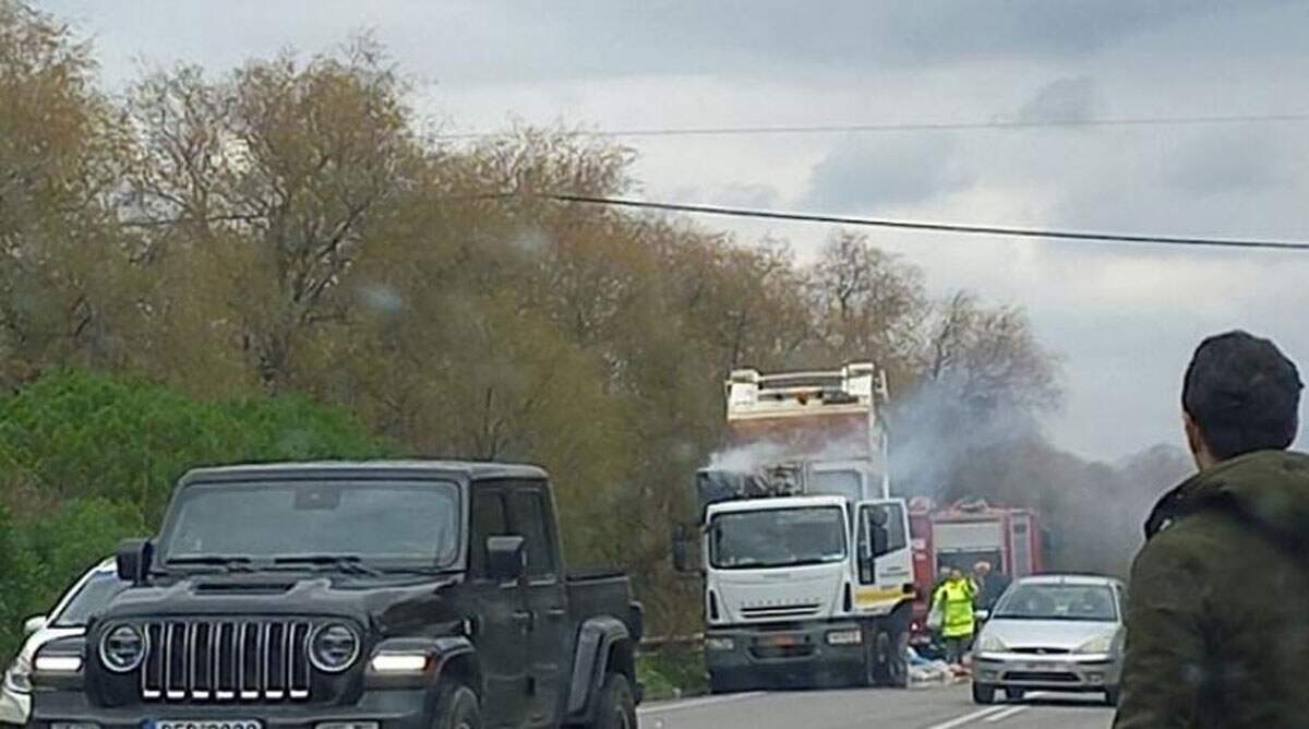 Φωτιά ξέσπασε στο φορτίο απορριμματοφόρου που κινούνταν στην Εθνική Οδό στο ύψος του Σταυρωμένου στο ρεύμα προς Ρέθυμνο.